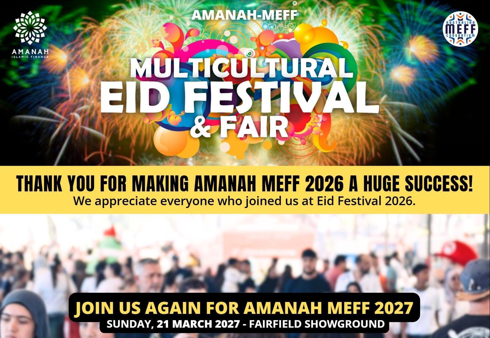 The Multicultural Eid Festival and Fair (MEFF) is the largest Eid Festival in Australia, welcoming tens of thousands of people from over 35 diverse communities.